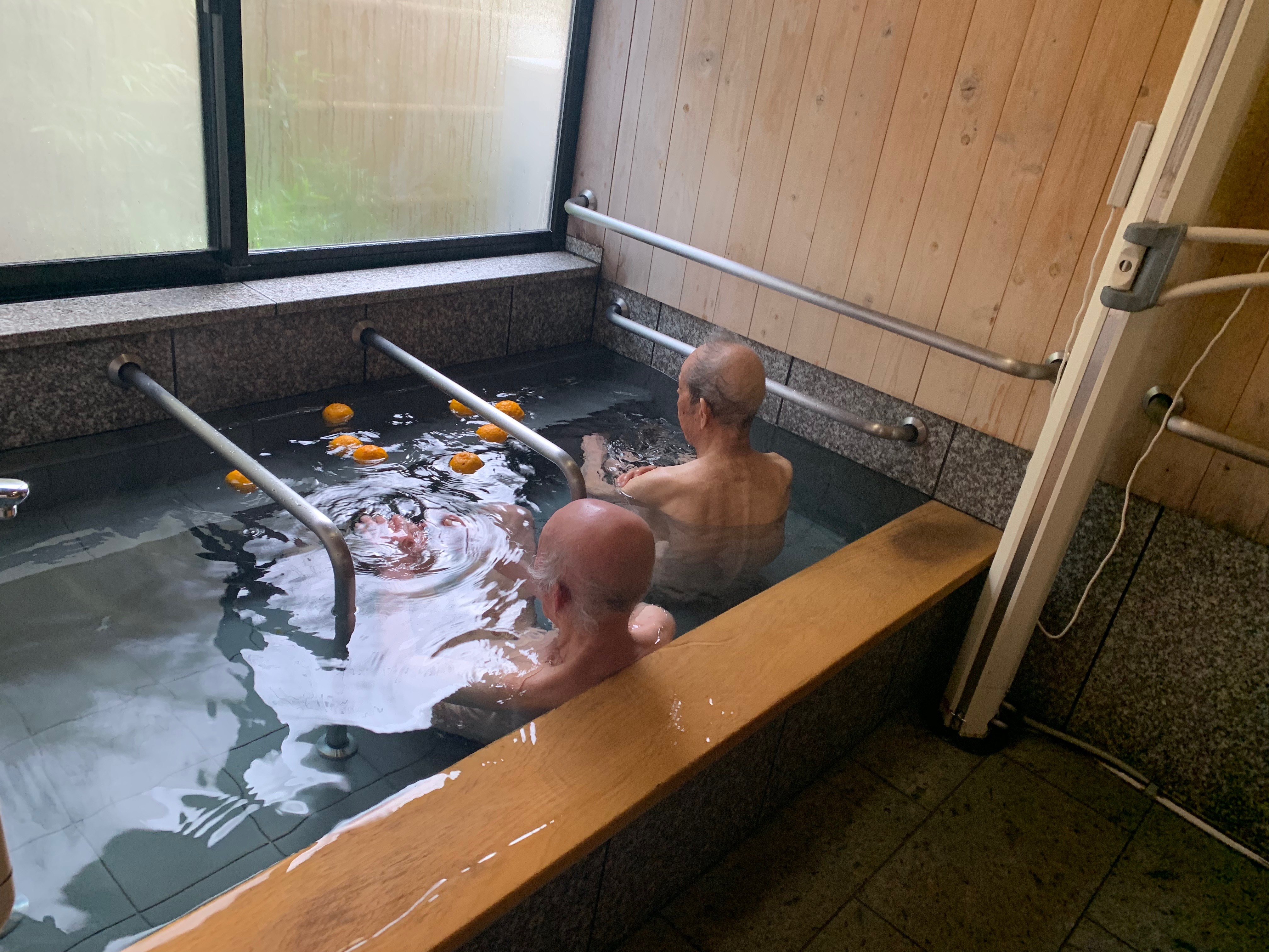 皆様「いい香りするな」「温まるな」「美味しそうだな」とそれぞれにゆず湯を楽しんで頂いております