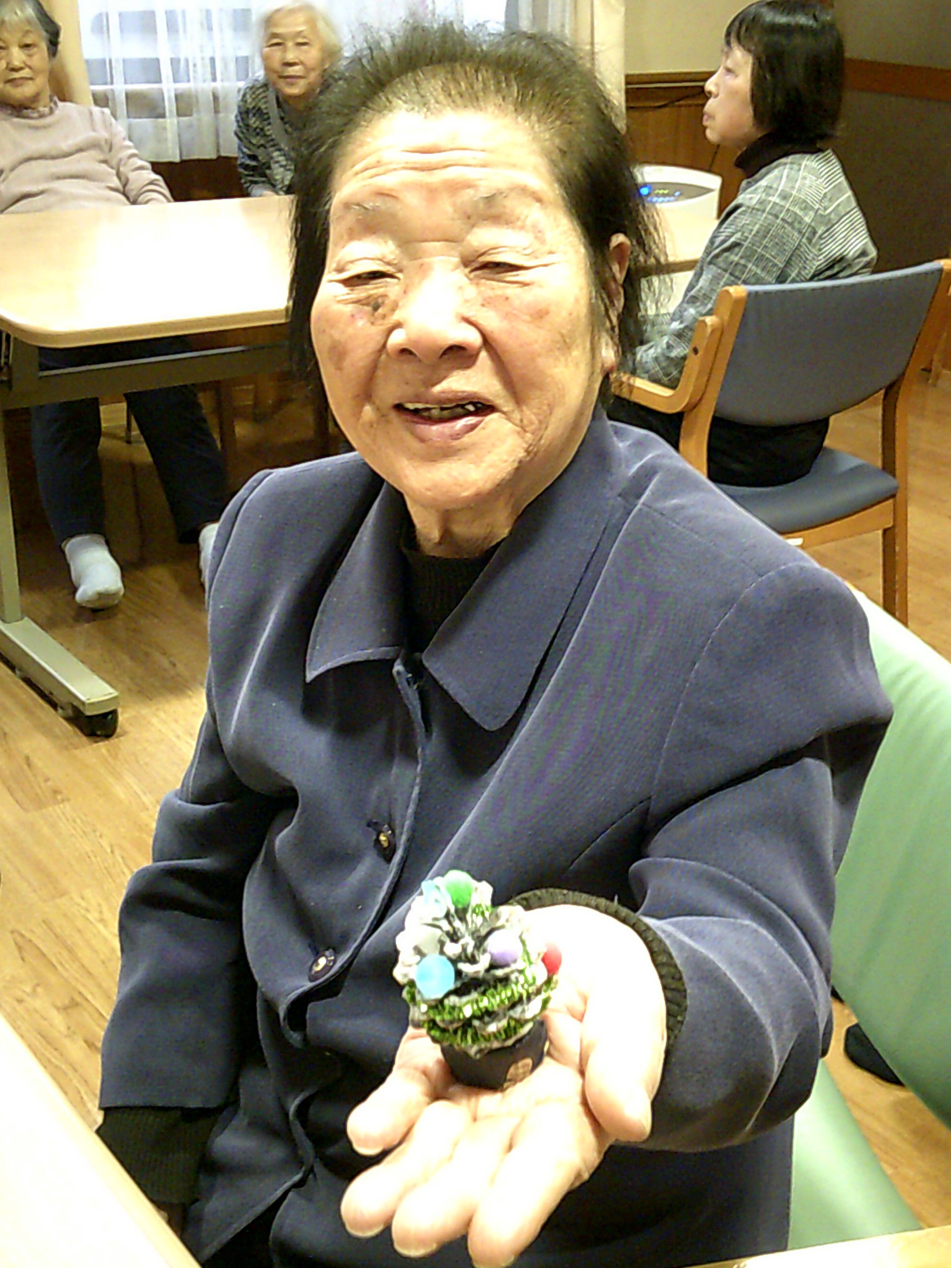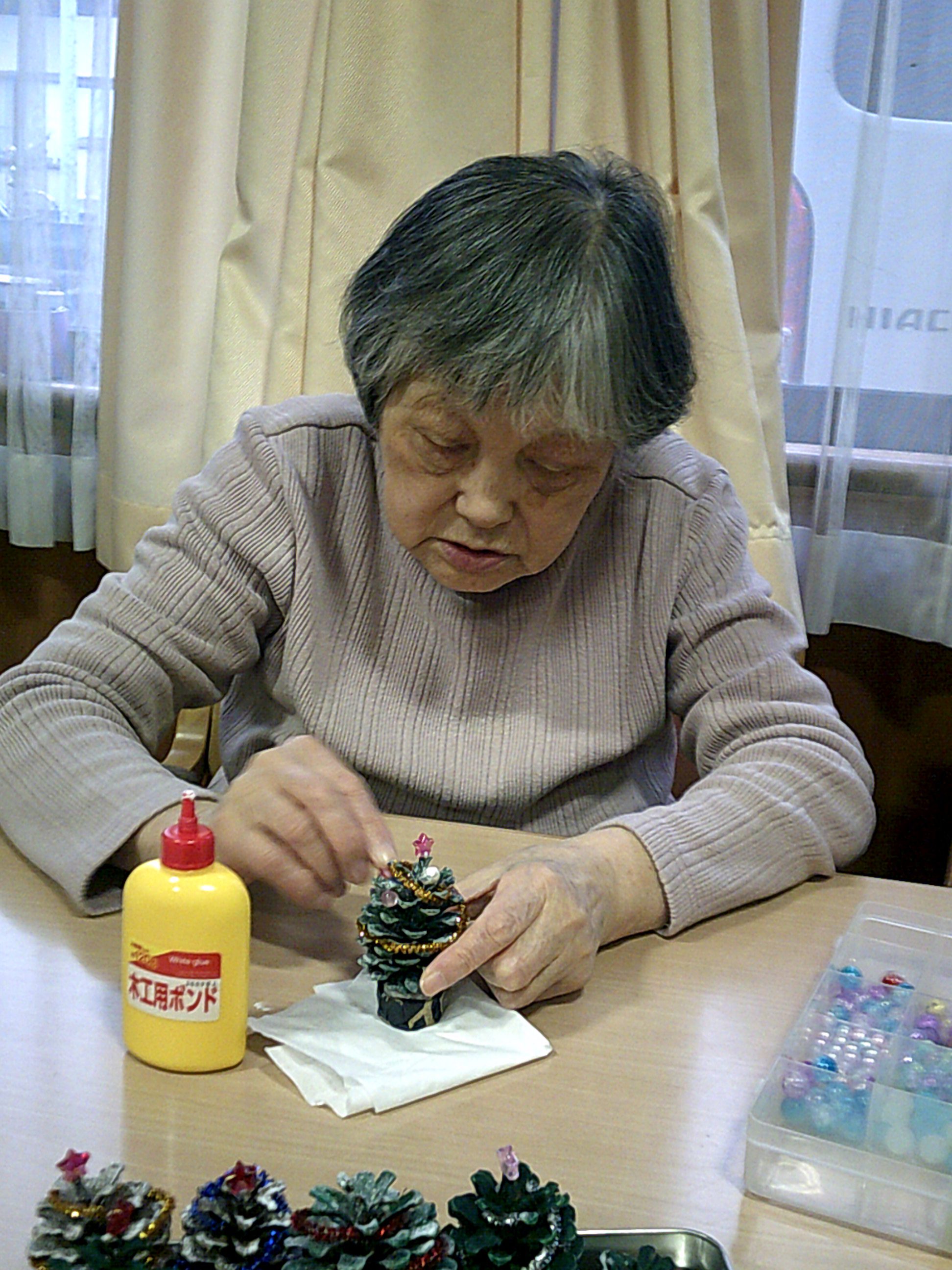 皆様きれいに出来た松ぼっくりクリスマスツリーを喜ばれ持ち帰って頂きました