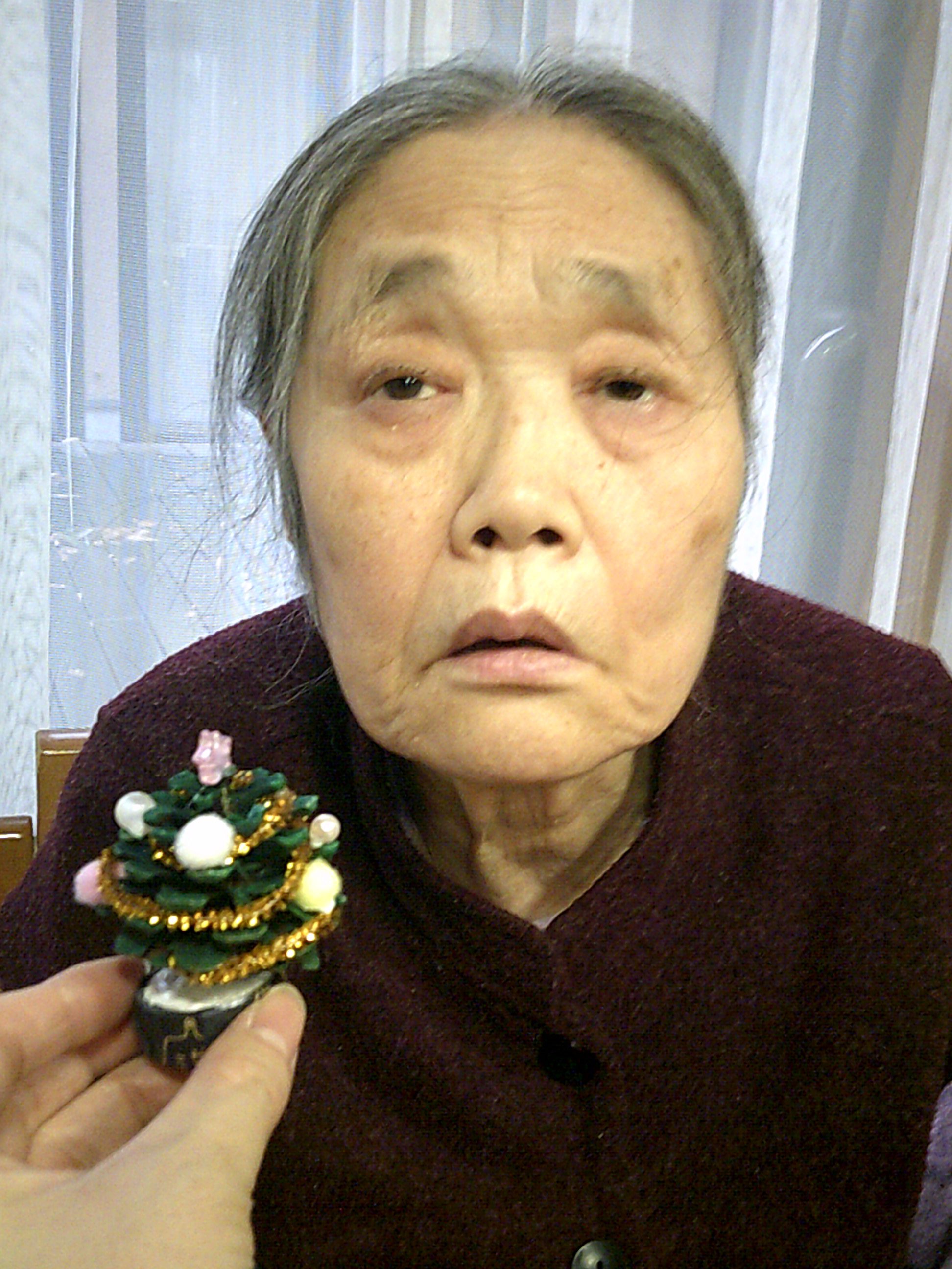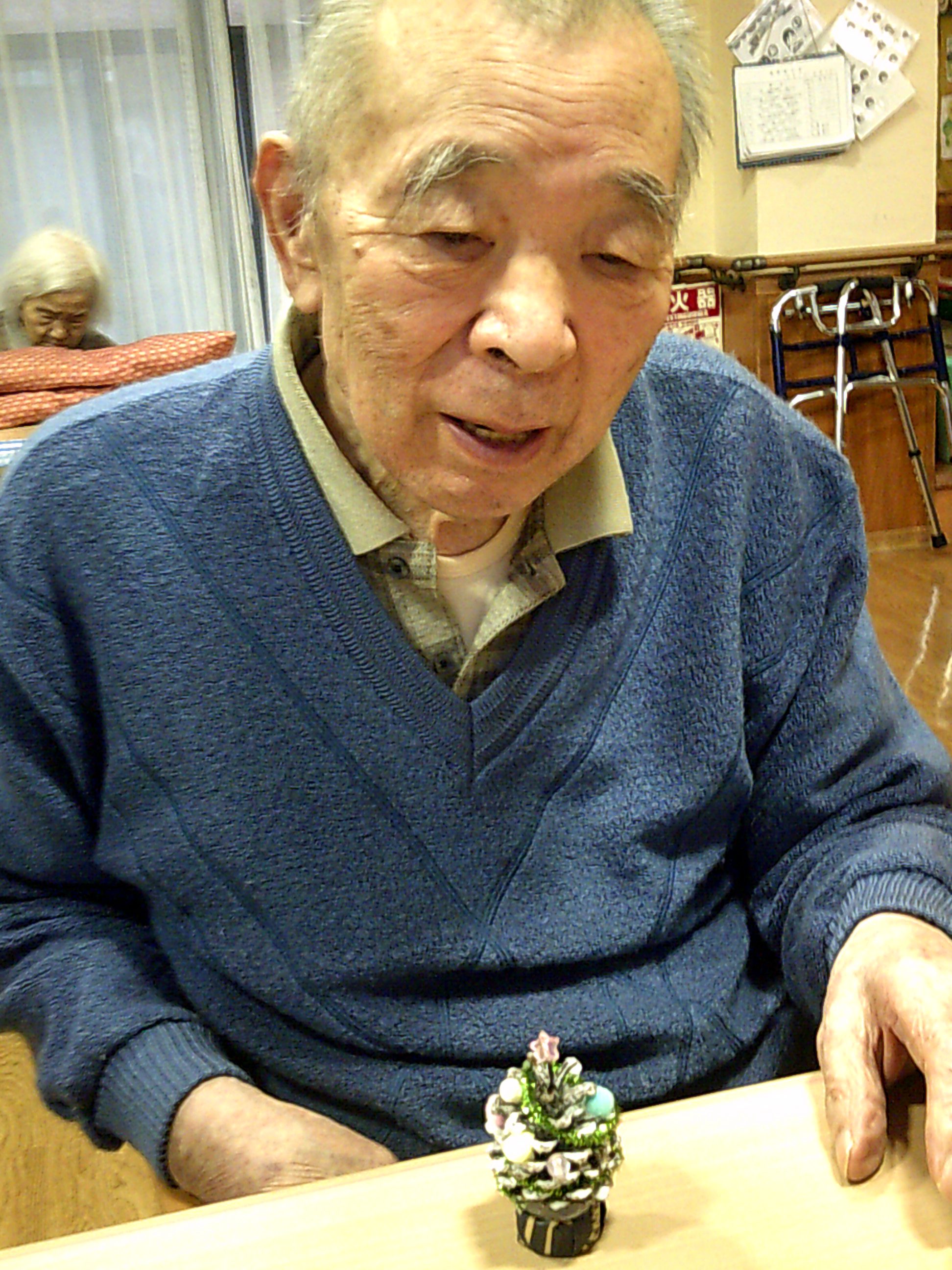 皆様、出来上がった松ぼっくりクリスマスツリーを見られ