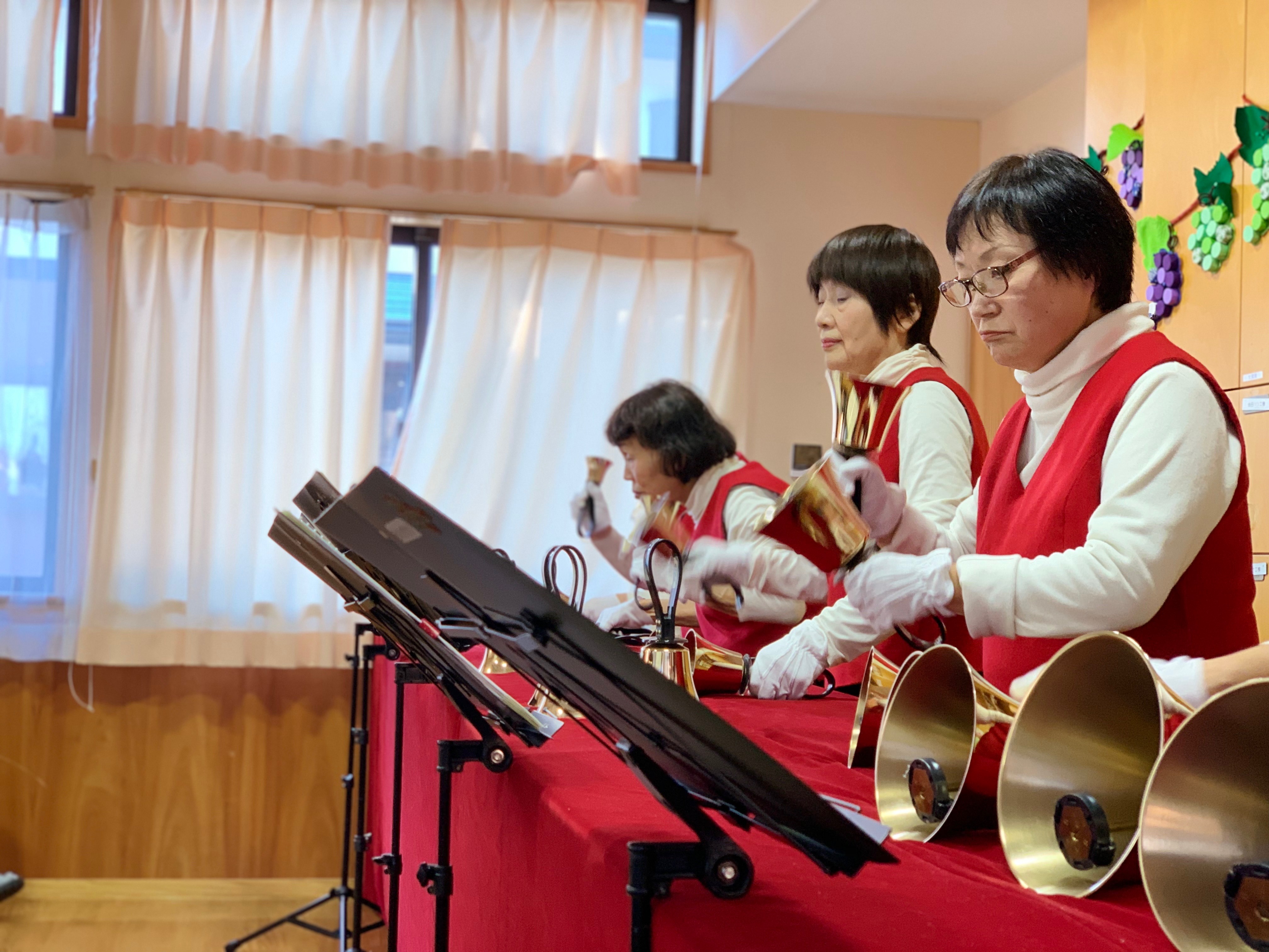 12月10日山形ベルの会のボランティアの方々に着て頂きハンドベル演奏会を行いました‼