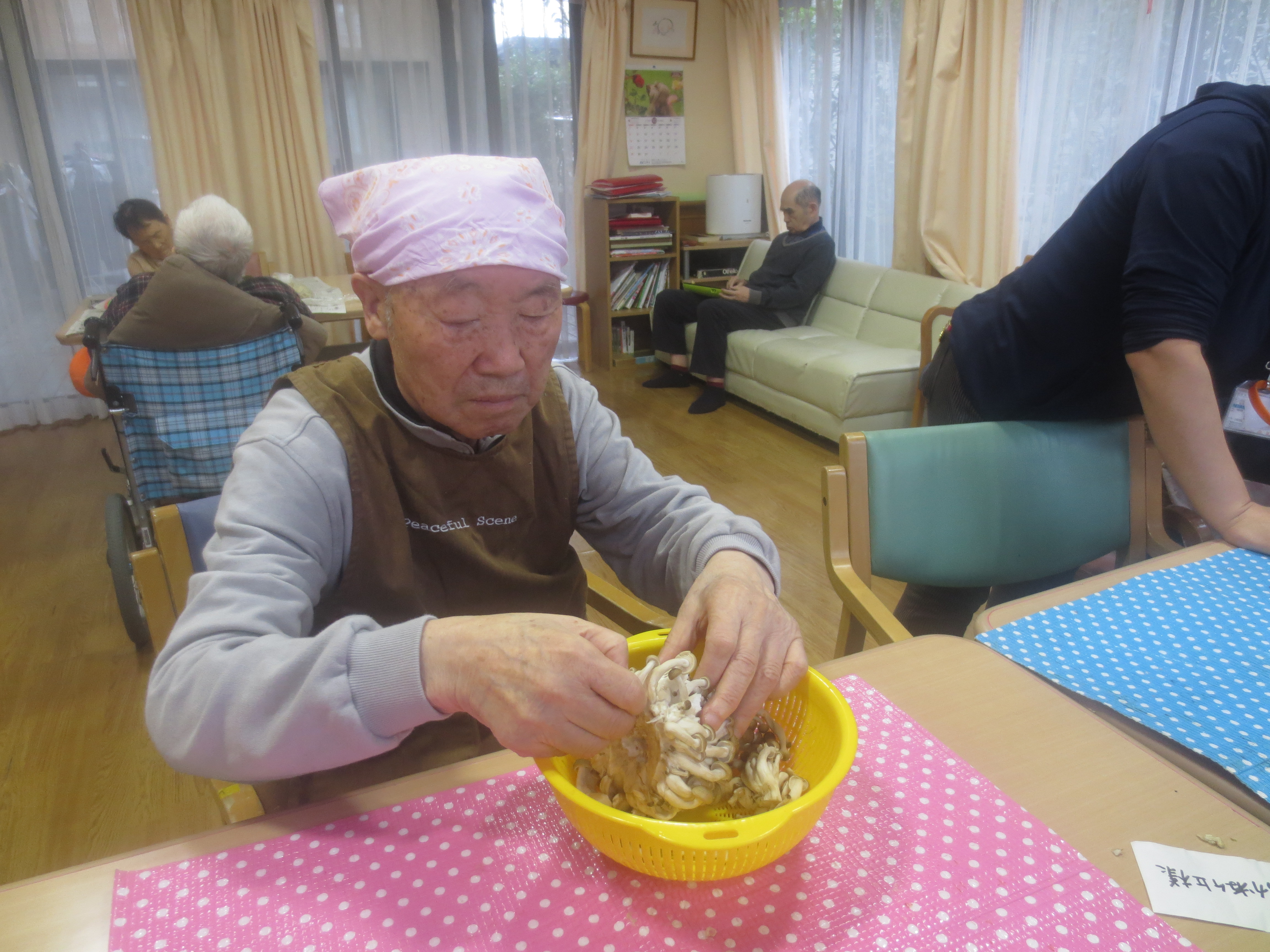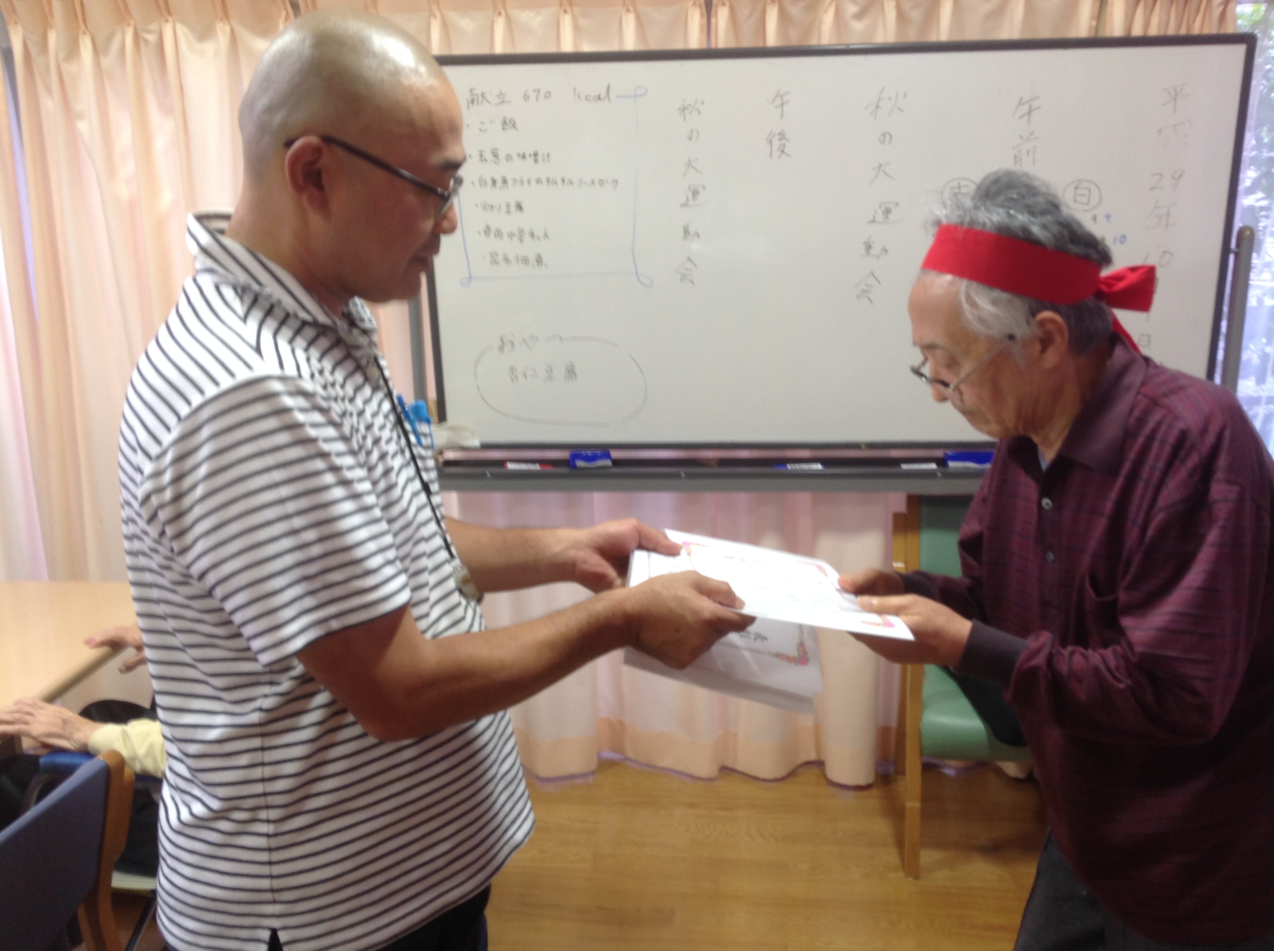最後に敬老会に向けてご利用者と一緒になって作成した、ハンカチの玉ねぎ染めをプレゼントさせて頂きました ![]()