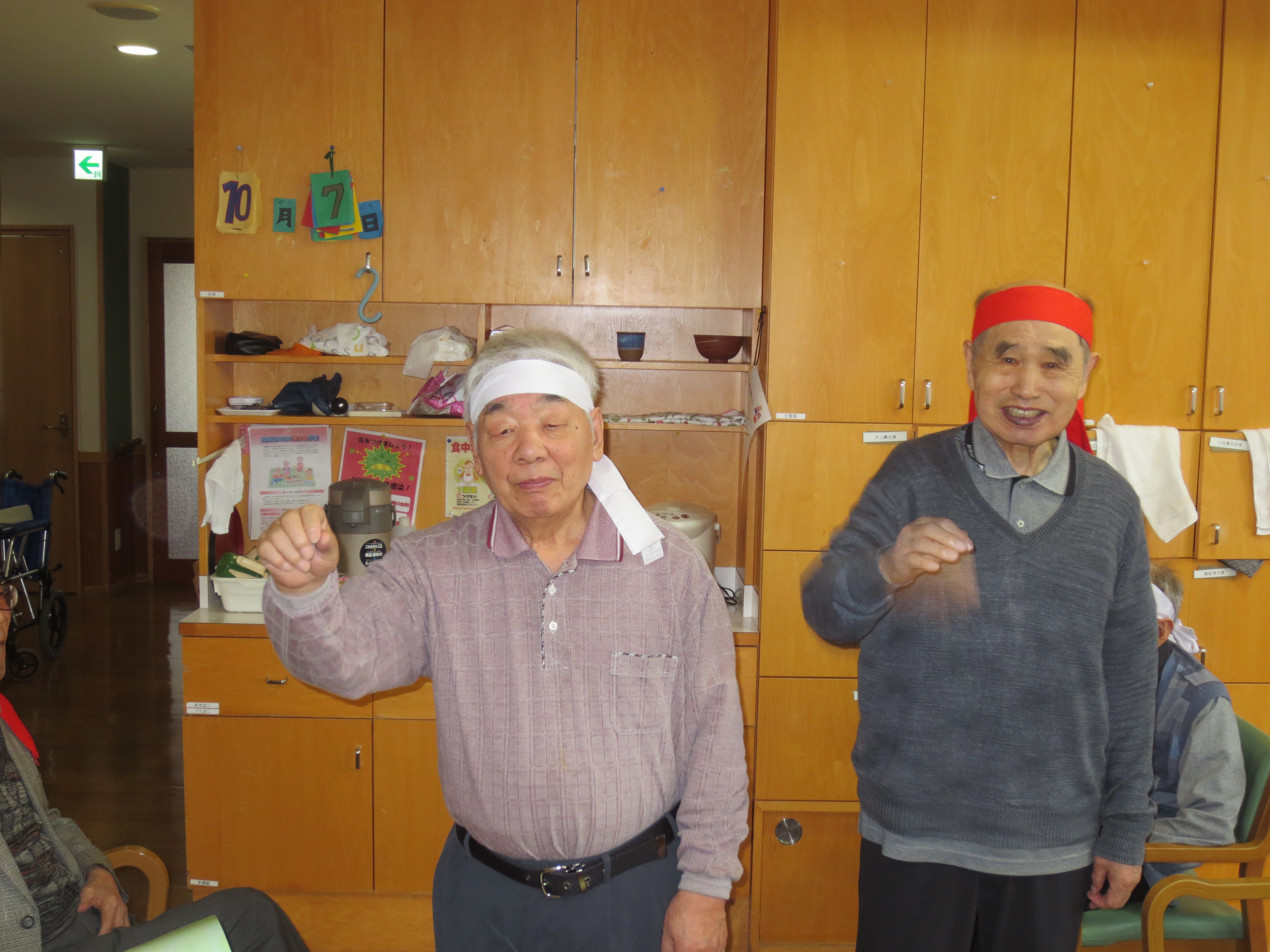あかねヶ丘ケアセンターでは当法人オリジナル曲「楽聖会ロックンロール」に合わせて、当法人機能訓練指導員長尾が考案した「楽聖会ロックンロール体操」を披露しました。