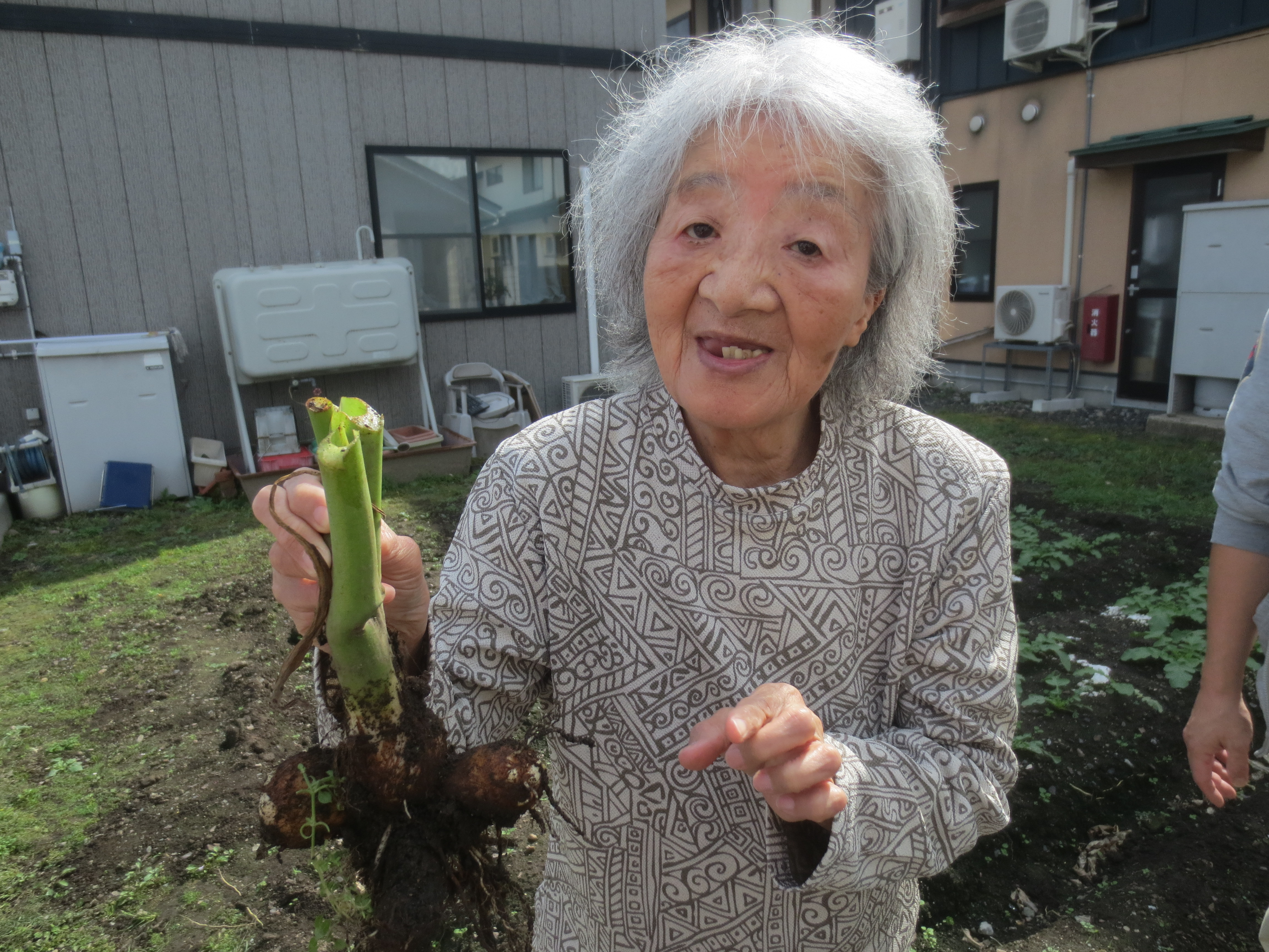 当センターの畑で育てた里芋を事前にご利用者と一緒に掘り、乾燥させた里芋を今回の芋煮会で使用しました。