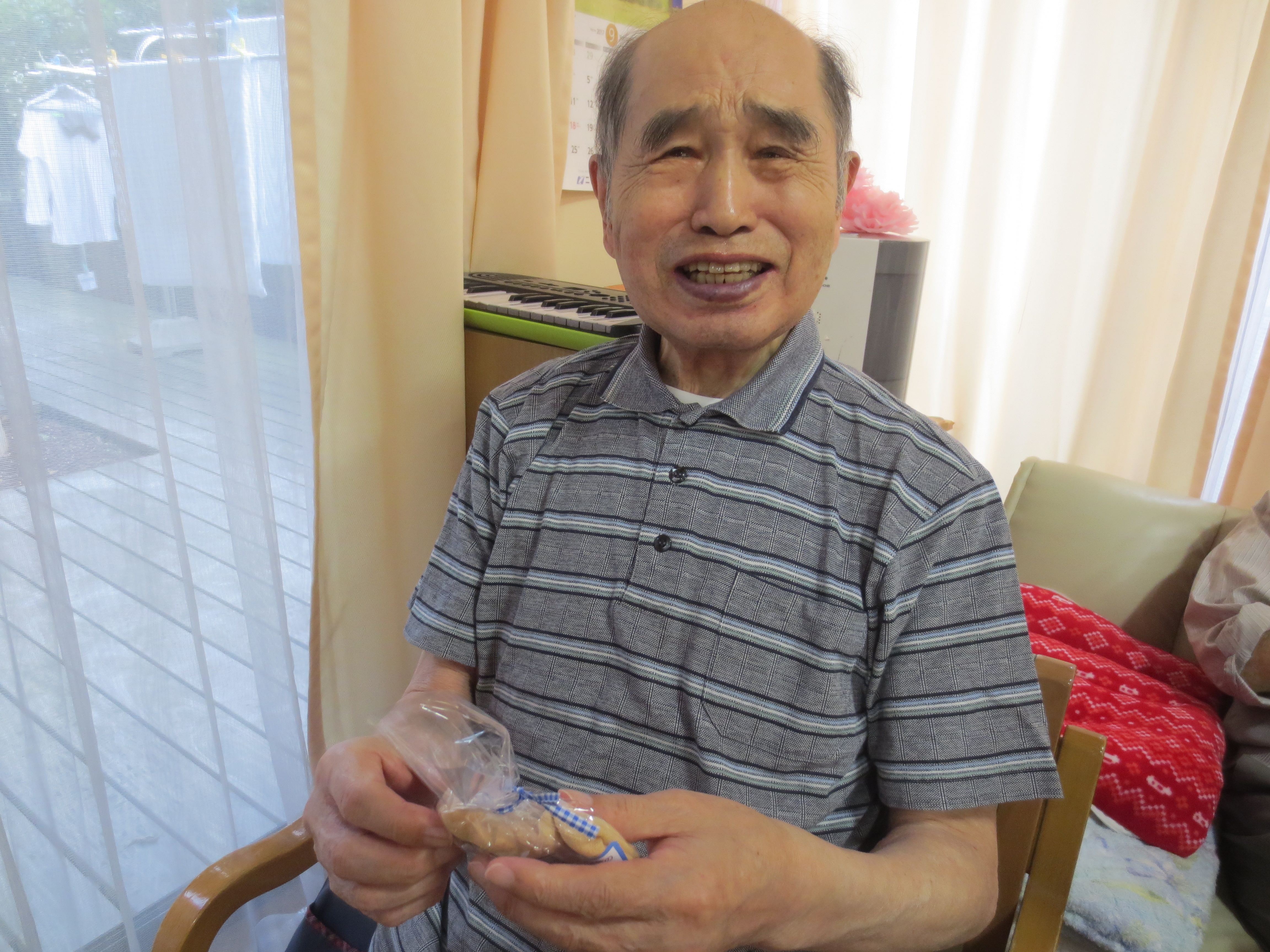 最後に敬老会に向けてご利用者と一緒になって作成した、ハンカチの玉ねぎ染めをプレゼントさせて頂きました ![]()
