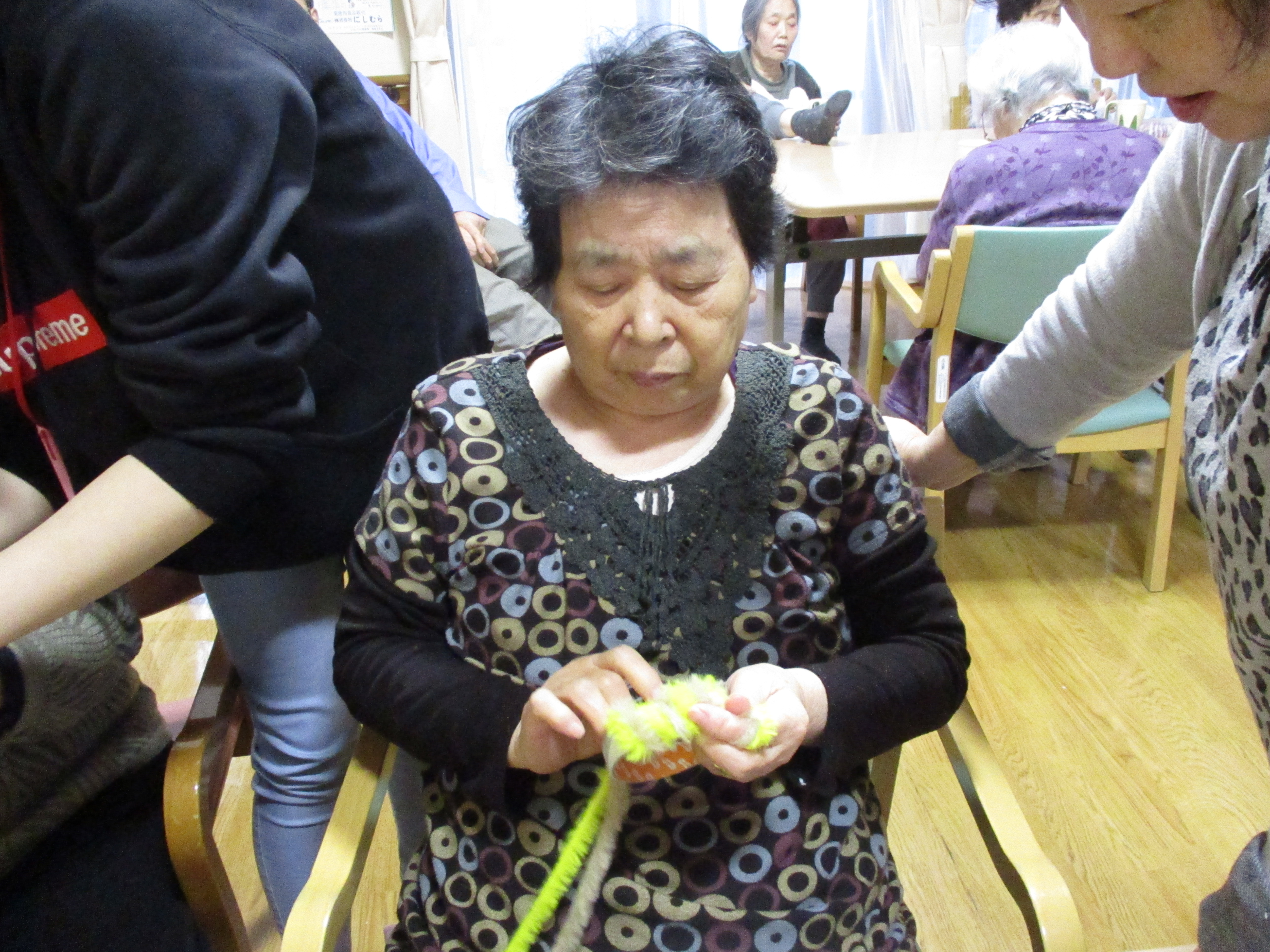 ホーム イベント・お知らせ クリスマスリース作り(認知症対応型通所介護) イベント・お知らせ クリスマスリース作り(認知症対応型通所介護) 6日クリスマスリース作りを行いました。 好きな色を毛糸を選んで頂き、くるくるとセロハンテープの芯に巻きました。 毛糸を巻いたリースに飾りとお星さまを付けて ふわふわモコモコのリースが はい♡出来あがり♡皆さんもクリスマスを楽しんで下さいませ♡ 「イベント・お知らせ イベント・お知らせ スタッフブログ 新着情報」2018.12.10.(月) コンテンツメニュー イベント・お知らせ 介護Q&A 新着情報 求人情報 認知症について 最近の記事 良いお年を~ 12月の広報誌 感染症対策! 西公園ドライブ🚙 お茶会 スペシャルコンテンツ お知らせ