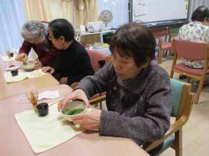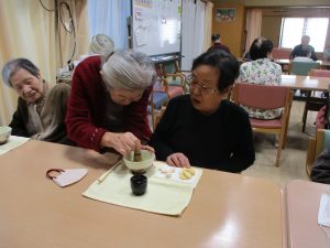毎月、裏千家師範の中嶋先生をお招きしてお茶会を開催しております。