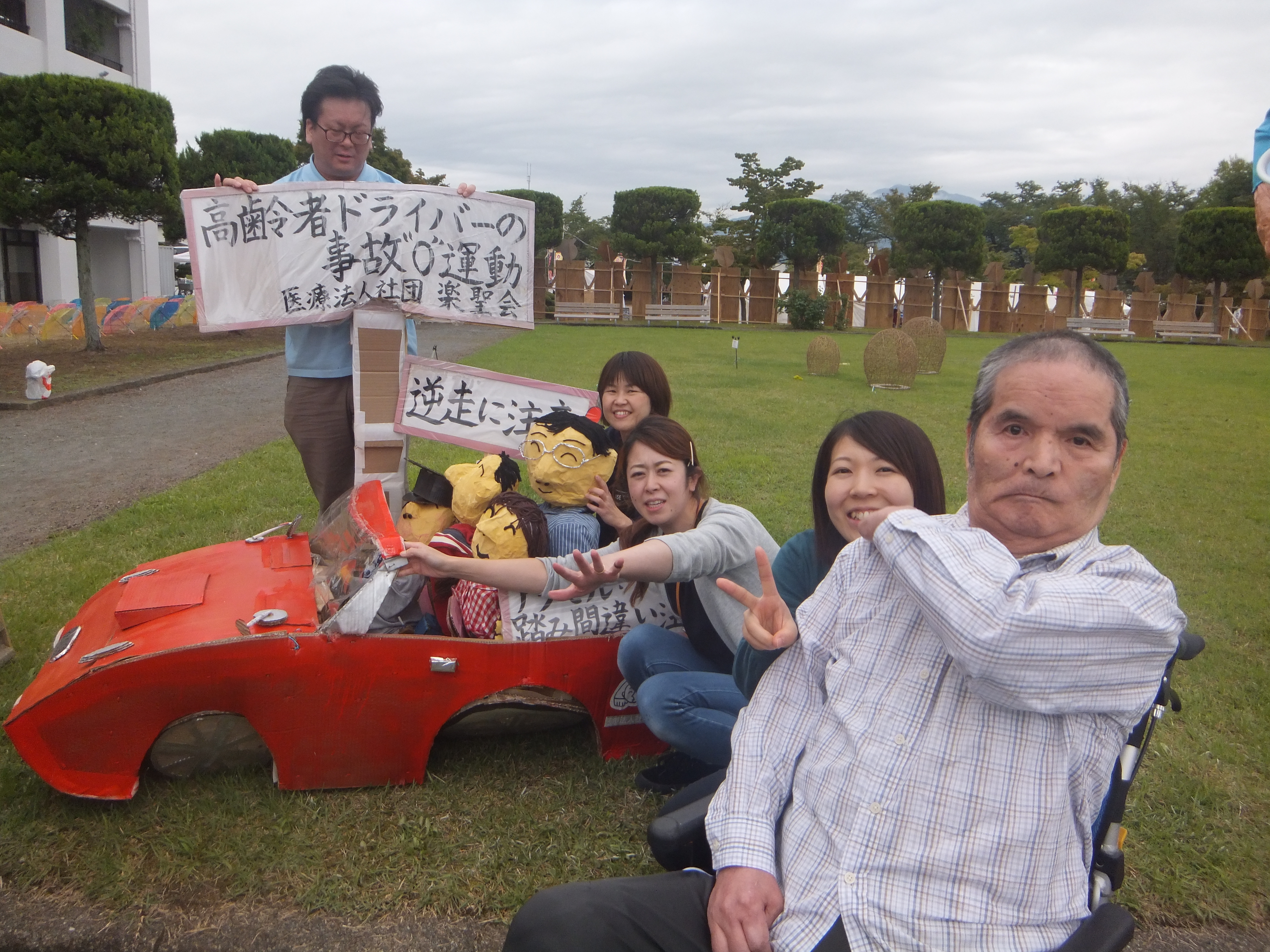 今年は楽聖会でもかかし作りに挑戦し、【高齢者ドライバーの事故ゼロ運動】をテーマに楽聖会のマークをイメージしながらご利用者と一緒に作り上げました!(^^)!