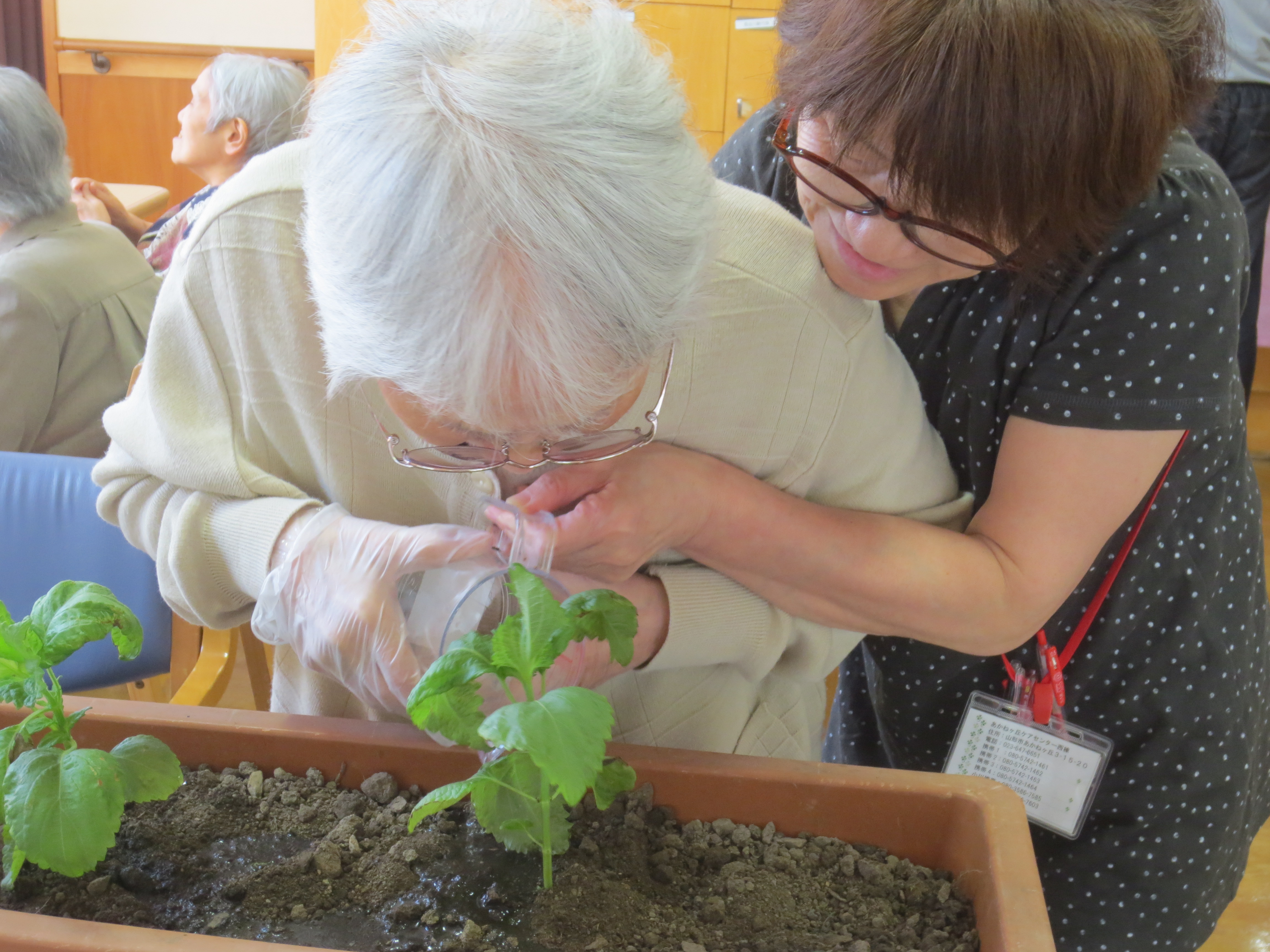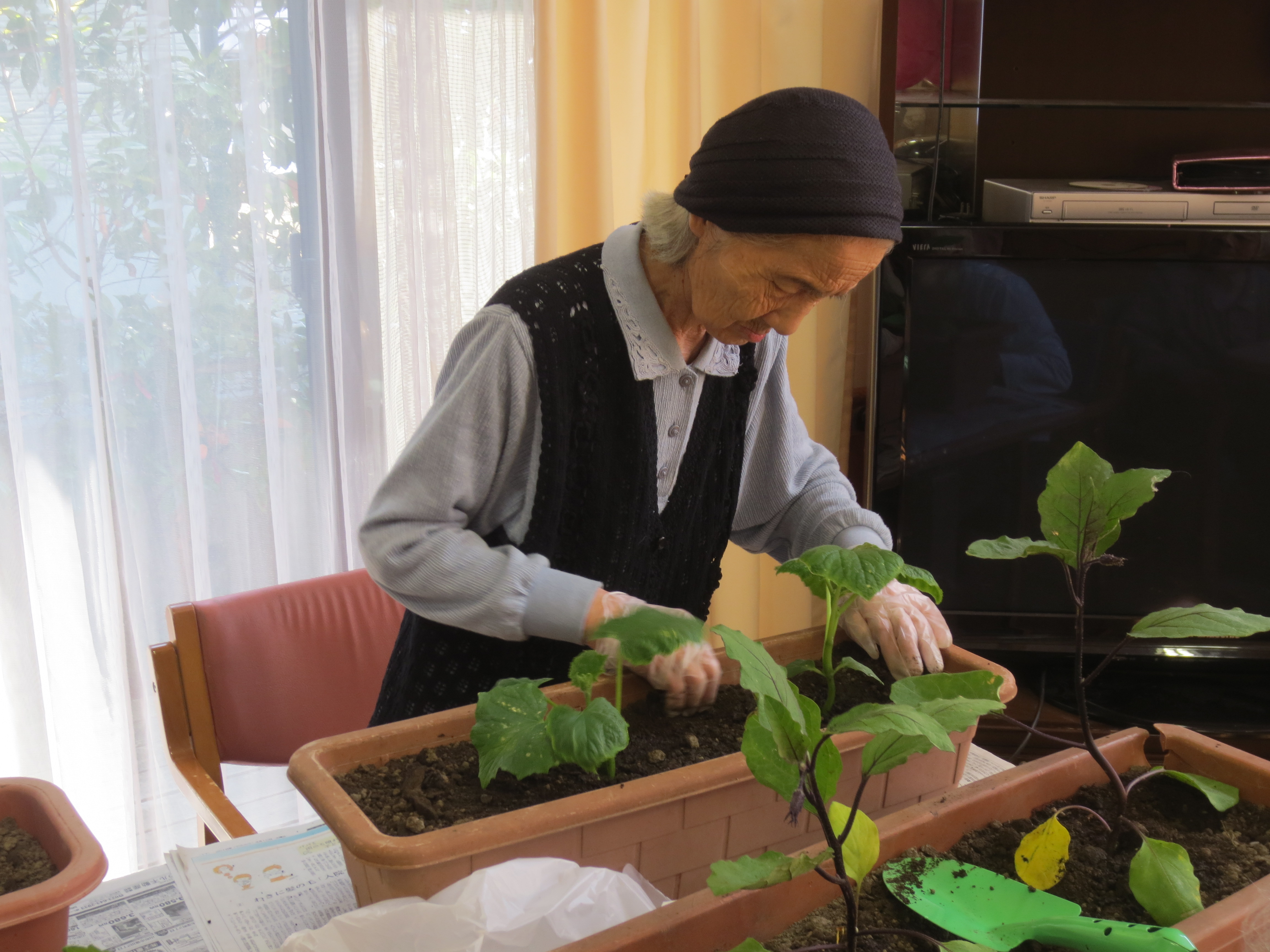 ホーム イベント・お知らせ 大~きくなれよ\(^^)/ (認知症対応型通所介護) イベント・お知らせ 大~きくなれよ\(^^)/ (認知症対応型通所介護) プランター栽培 はじめました\(^^)/ 利用者様、皆で今年もダシ作りをするためナス・キュウリ・大葉を植えました。 おまけに枝豆も植え、おつまみにしたいですね♡ 枝豆 ナス 最後にみんなで 「大きくなれよ~♪」 「イベント・お知らせ イベント・お知らせ スタッフブログ 新着情報 認知症対応型デイサービス」2018.06.03.(日) コンテンツメニュー イベント・お知らせ 介護Q&A 新着情報 求人情報 認知症について 最近の記事 良いお年を~ 12月の広報誌 🍁紅葉狩り🍁 感染症対策! 西公園ドライブ🚙 スペシャルコンテンツ お知らせ