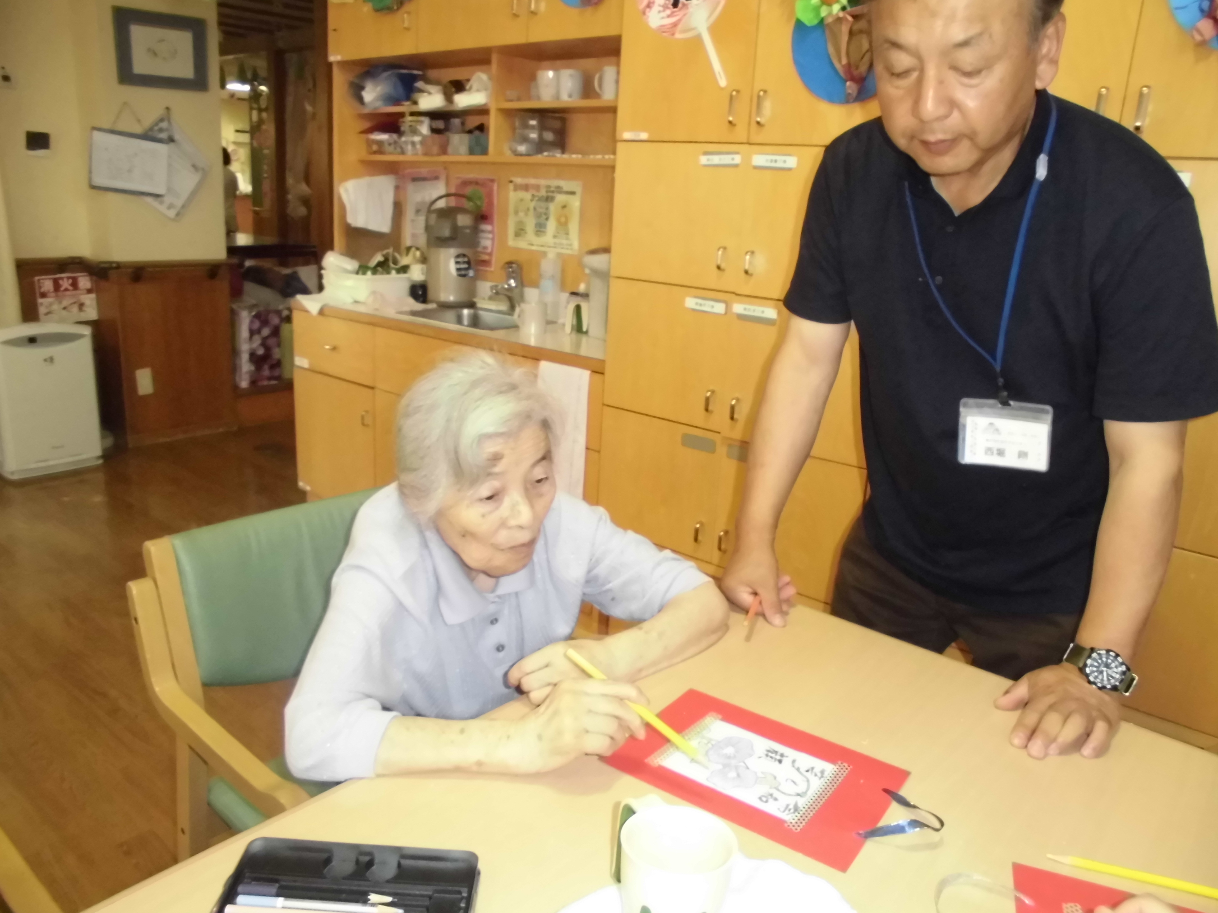 ホーム イベント・お知らせ 絵手紙作り(認知症対応型通所介護) イベント・お知らせ 絵手紙作り(認知症対応型通所介護) 8月7日に絵手紙作りを行いました。 送りたい方を思い浮かべながら 皆さん丁寧に色を付けて下さっております。 とても上手に出来上がった作品を 自宅へお持ち帰り頂きました。 「イベント・お知らせ イベント・お知らせ スタッフブログ 新着情報 認知症対応型デイサービス」2019.08.13.(火) コンテンツメニュー イベント・お知らせ 介護Q&A 新着情報 求人情報 認知症について 最近の記事 良いお年を~ 12月の広報誌 🍁紅葉狩り🍁 感染症対策! 西公園ドライブ🚙 スペシャルコンテンツ お知らせ