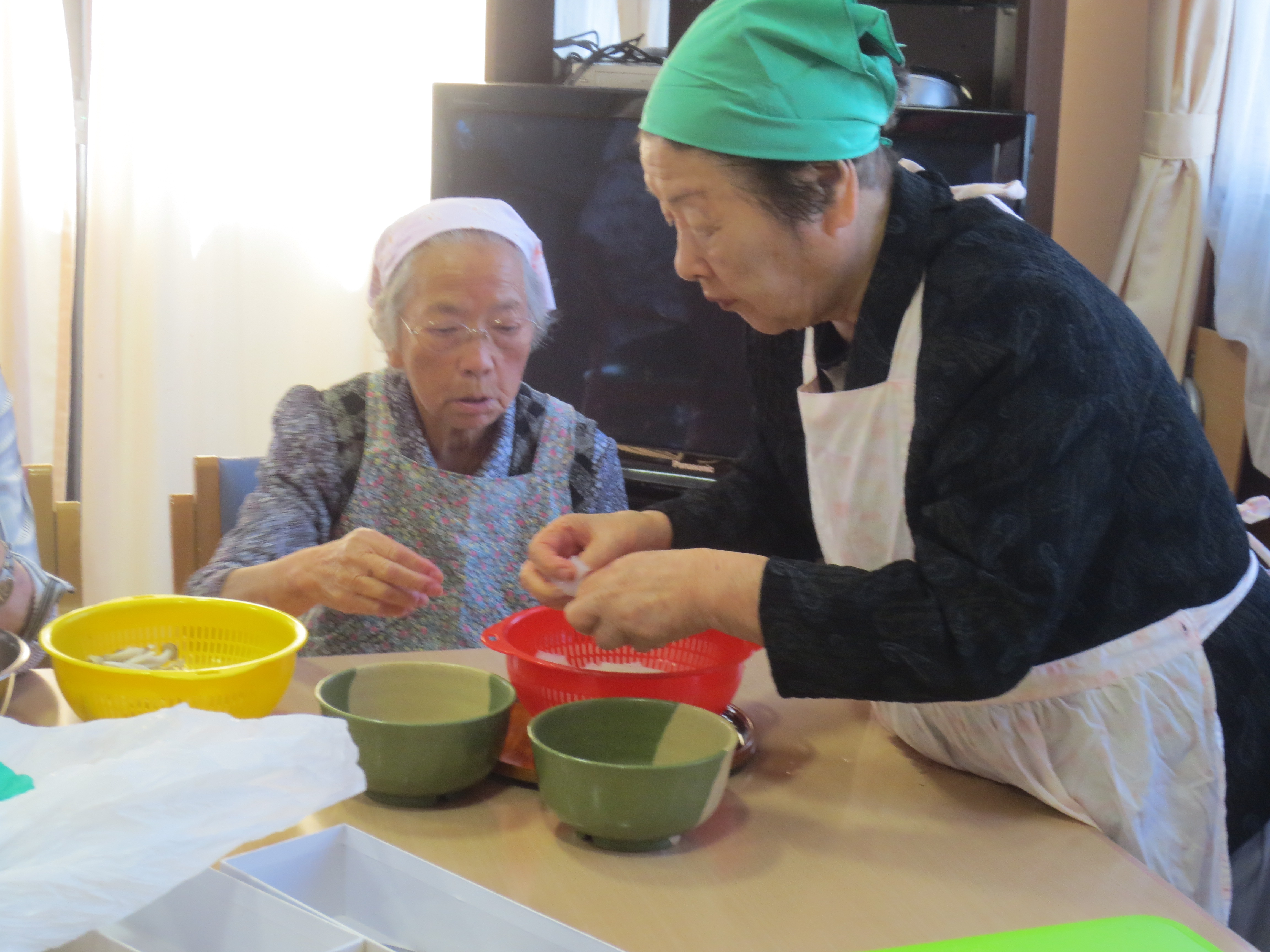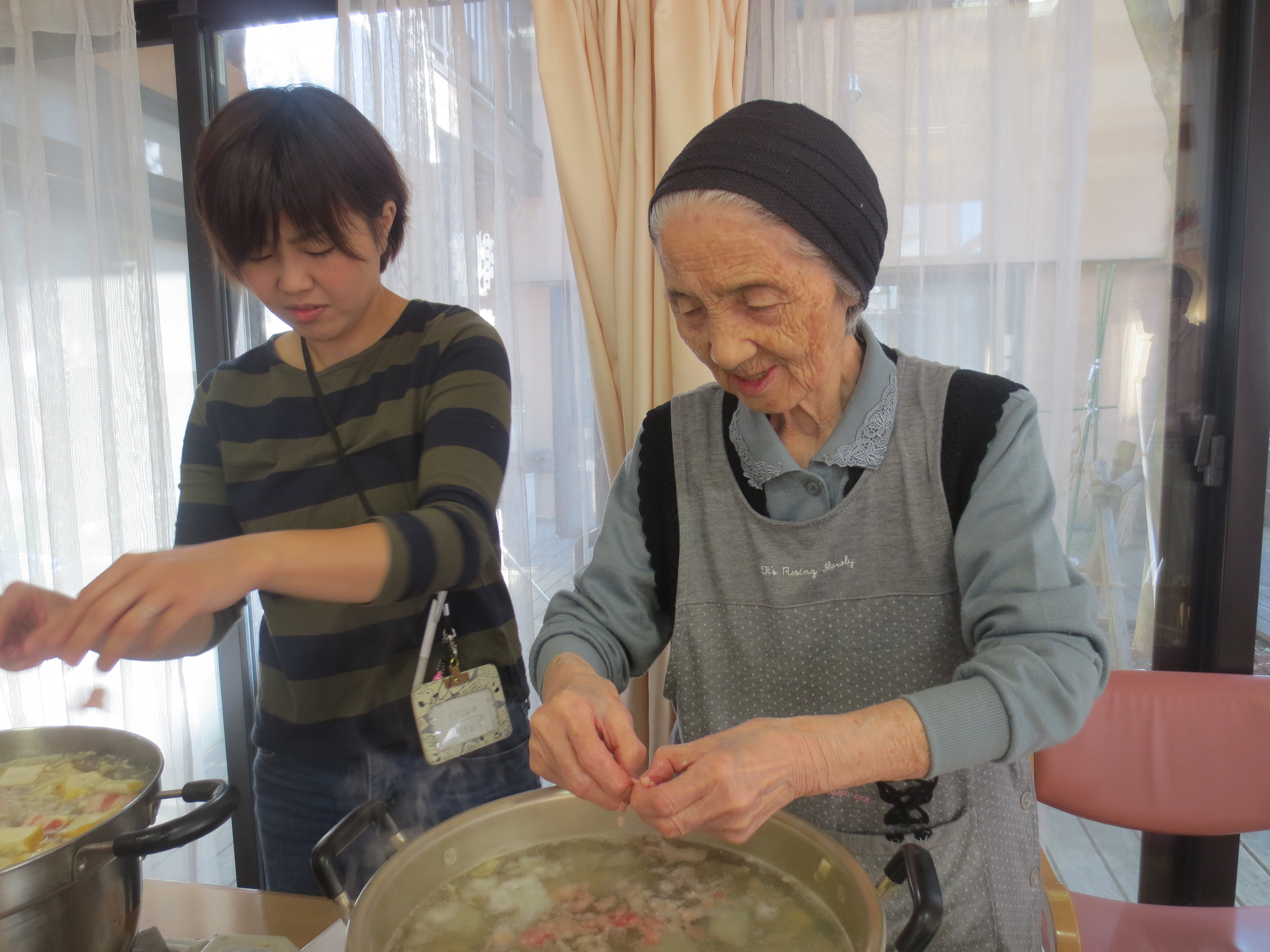 10月18日芋煮会を行いました!王道の醤油と新味の塩味の2種類を作り、皆様で食べ比べました。塩味は鍋キューブで味付けを行い豚肉やえのき等を入れてみましたが「塩味もなかなか美味しいね」との声が多くおかわりをして下さる方もたくさんおられました。