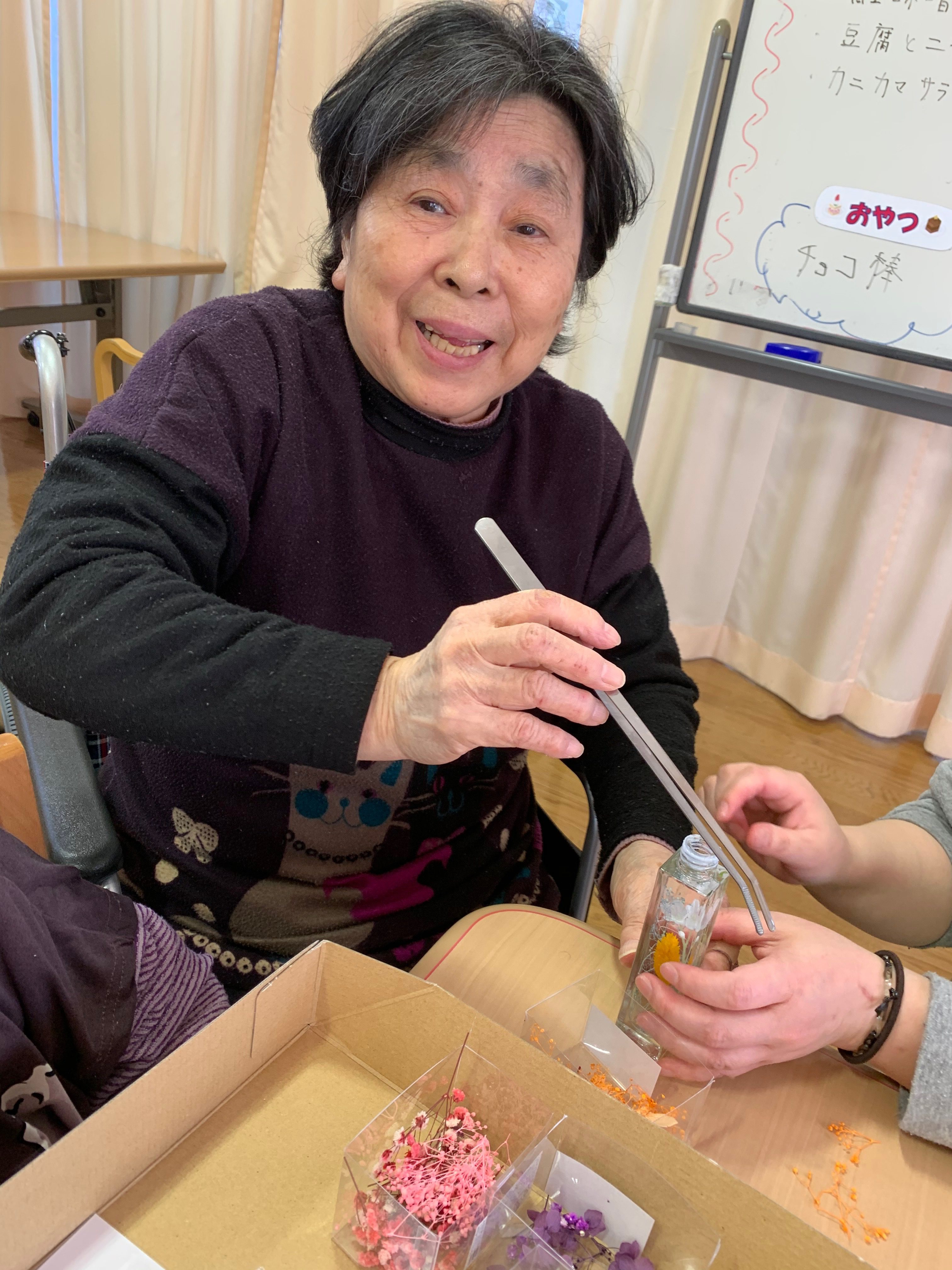 ホーム イベント・お知らせ 🌼ハーバリウム🌼作り(認知症対応型通所介護) イベント・お知らせ 🌼ハーバリウム🌼作り(認知症対応型通所介護) 3/19ハーバリウム(花の標本のような置物)を作りました。 色とりどりのドライフラワーと造花を組み合わせて、自分好みのハーバリウムを作って頂きました! 細かい作業でしたが、皆さん興味を持って下さり、集中して取り組んで下さいました。 綺麗で可愛らしい出来上がりに、皆さん満足して下さいました☆ 「イベント・お知らせ イベント・お知らせ スタッフブログ 新着情報 認知症対応型デイサービス」2020.03.24.(火) コンテンツメニュー イベント・お知らせ 介護Q&A 新着情報 求人情報 認知症について 最近の記事 良いお年を~ 12月の広報誌 🍁紅葉狩り🍁 感染症対策! 西公園ドライブ🚙 スペシャルコンテンツ お知らせ