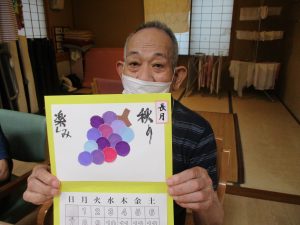 ホーム あかねヶ丘ケアセンター デイサービス Q&A よくある質問 9月カレンダー🍇 Q&A よくある質問 9月カレンダー🍇 創作倶楽部にて9月のカレンダー作りを行いました。 9月という事で旬を迎える葡萄の装飾品を作成しました。 葡萄、一粒一粒を少し重ねて貼ってもらいました。 美味しそうな葡萄が完成しました。 ぜひ、ご自宅で飾って下さいね! 「Q&A よくある質問 あかねヶ丘ケアセンター デイサービス イベント・お知らせ イベント・お知らせ スタッフブログ 新着情報 活動報告」2025.08.30.(土) コンテンツメニュー イベント・お知らせ 介護Q&A 新着情報 求人情報 認知症について 最近の記事 感染症対策! 足湯ドライブ(認知症対応型通所介護) 芋煮合戦(認知症対応型通所介護) 山形舞子inあかねヶ丘ケアセンター(認知症対応型通所介護) 敬老会💐(認知症対応型通所介護) スペシャルコンテンツ お知らせ