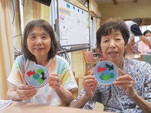 今回の創作倶楽部は涼し気な金魚の壁飾りです。